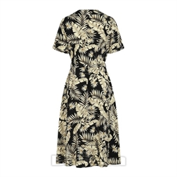 Black Yvette skjortekjolen er en flot 40er-inspireret skjortekjole i sort med et flot tropisk print Stof: 100% Viscose Vaskeråd: Maskinvaskbar ved 30 grader