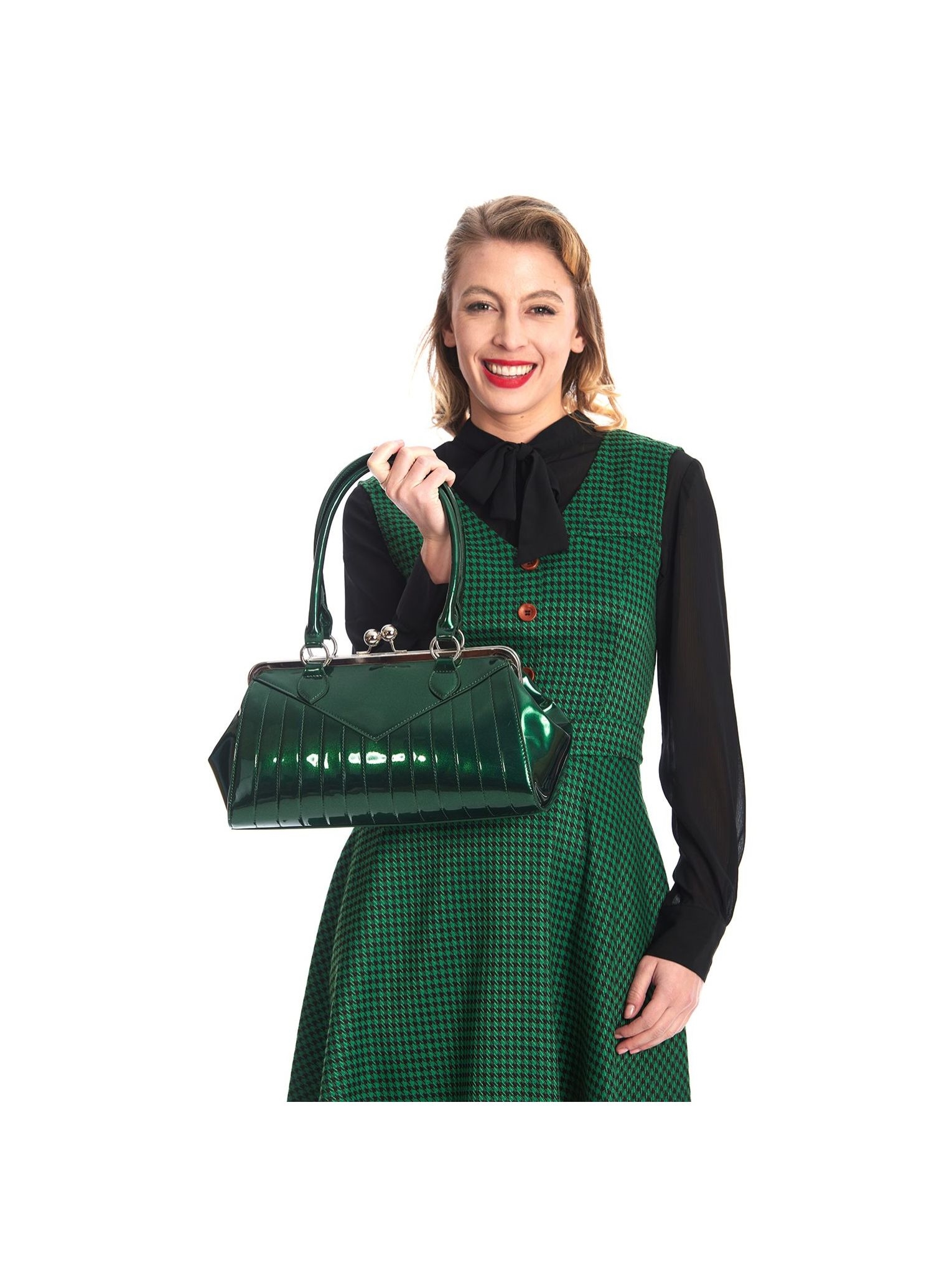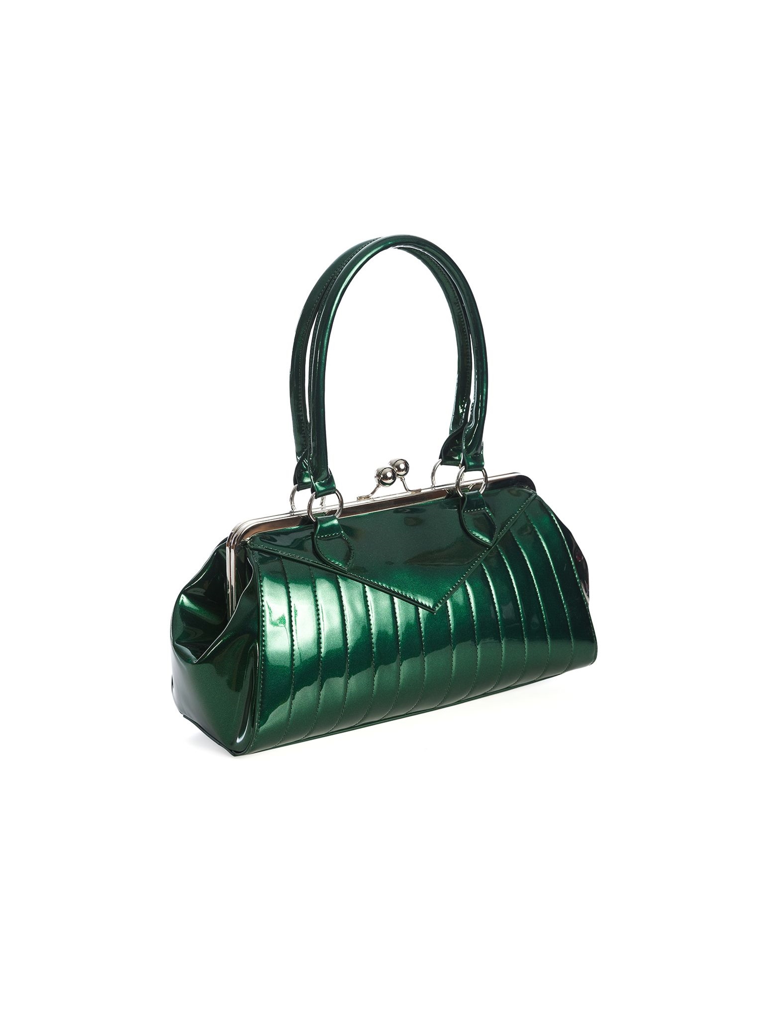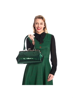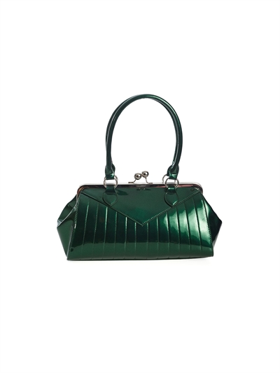 SHIMMER LAQUER ROCKABILLY HÅNDTASKE I IMITERET LÆDER TEKSTILFOR