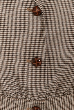 Kort jakke i 1940'er-stil med et brunt houndstoothmønster. Du kan bruge den afslappet med jeans, men den ser også flot ud med vide bukser eller en nederdel.